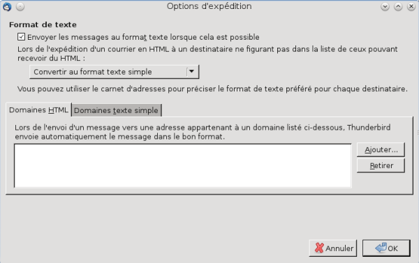 Là, une rubrique "Format de texte" permet de choisir le format d'envoi des messages.